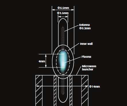以上のことからアンテナ励起により、マイクロ波プラズマが管壁から離れて発生し、その結果管壁温度が下がったと考えられる。管壁安定型のランプは発光管の温度で諸条件が決定されるので、その温度が低くできる効果は大きいといえる。例えば、冷却構造の簡素化や高入力化などが可能となる。さらに点光源の可能性も示唆しているので、今後の研究・開発の発展が期待される。