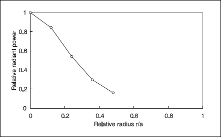 Fig. 7. Measured radial profile of the relative radiant power in the antenna excited lamp.