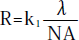 近年の半導体回路の集積化により、リソグラフィにおける光源の短波長化が進んでいる。これは、光の回折によりリソグラフィの加工寸法が制限されるためで、光源波長λと最小の加工寸法Rとの間にはの関係がある。ここでk1はレジストや超解像技術によって決まる値、NAは露光光学系の開口数である。