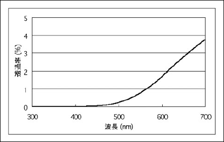 作製した量子ドットガラスの透過率スペクトルを図3に示す。g線(436nm)を十分カットすることができることが分かる。