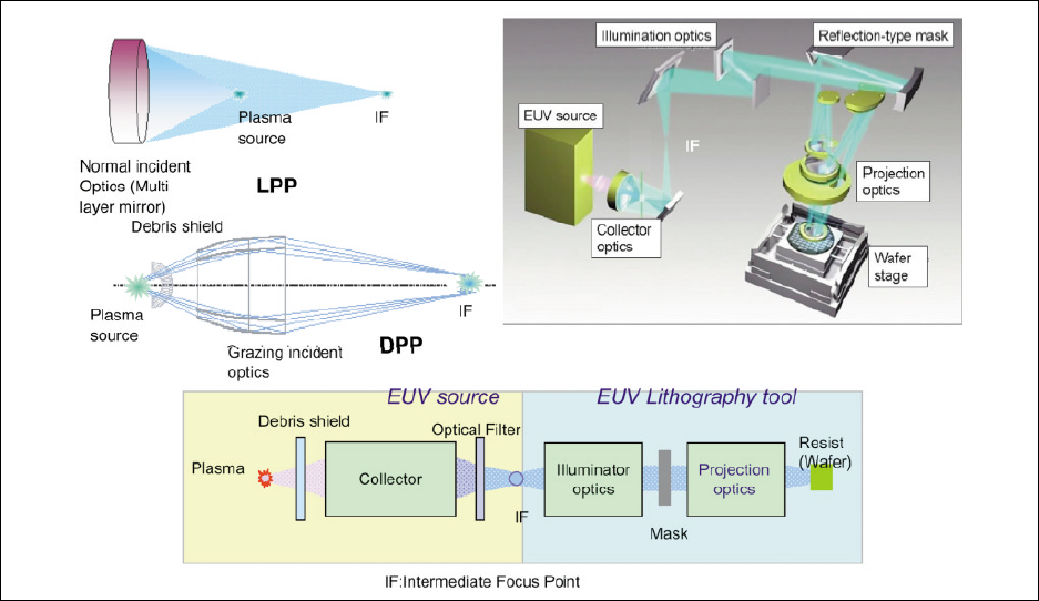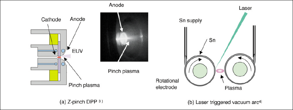 EUV lithography with a 13.5nm EUV (Extreme ultra-violet) light source is the strongest candidate of the next generation lithography for LSI. EUV is obtained from a high temperature and high density plasma by DPP (Discharge Produce Plasma) and LPP (Laser Produced Plasma).