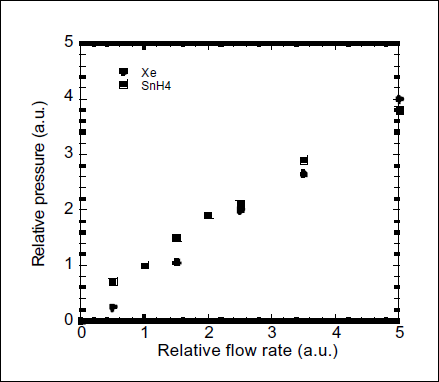 Fig.6. Pressure dependence on the flow rate for xenon and stannane.