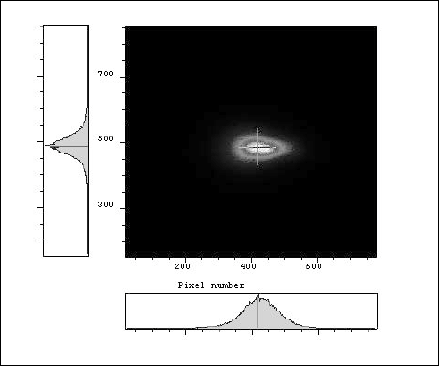 Fig.10. Time-integrated picture of in-band radiation emitted from stannane plasma, taken by a pinhole camera exposed over 200 pulses.