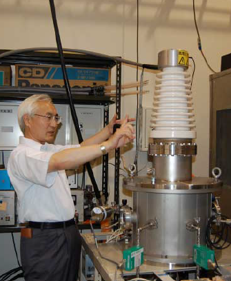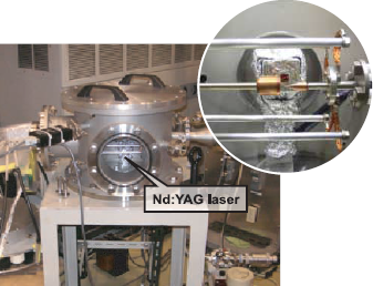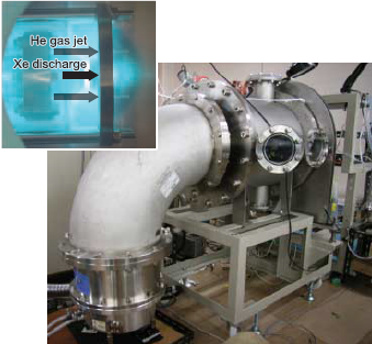 レーザートリガ型スズ放電生成プラズマEUV光源次世代半導体リソグラフィ用光源として期待されている、波長 13.5nmのEUV光源の基礎的研究を行っている。 この装置は、レーザー照射によりスズ蒸気を噴出させ、これに Zピンチ放電を行うことによって、温度40eV程度、 密度1019cm-3程度のプラズマを得、これから放射される EUV光を利用する。