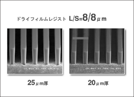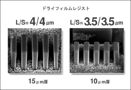 また、2013年以降のロードマップを見据え、L/S=4/4μmの超高解像装置もラインナップしており、最先端の顧客で採用されている(図4)。