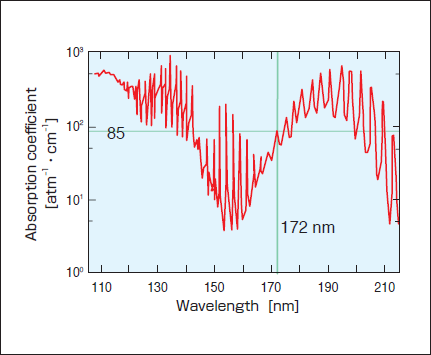 172nmでの窒素の吸収係数は低いため、エキシマランプでは窒素を希釈ガスとして使用できると考えられる。