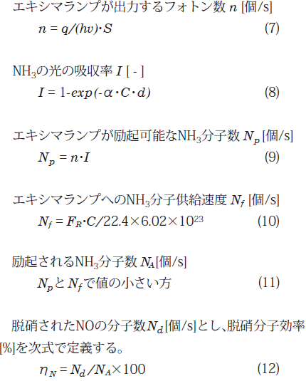すなわち、ηNはエキシマランプで活性化されたアンモニア分子数NAのうち何%が脱硝反応に利用されたかを示す。