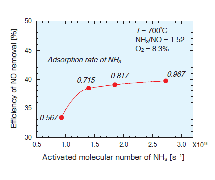 図7. 活性化アンモニア分子数と脱硝分子効率の関係