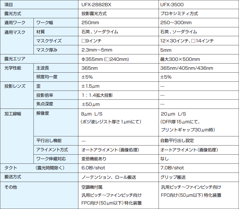 • ③ 汎用ニーズに対しプロキシミティ露光装置「UFX-3500」