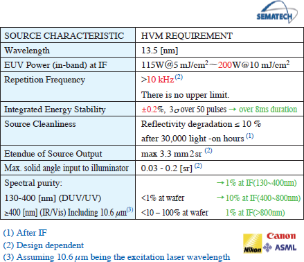 表1. EUV光源の要求性能