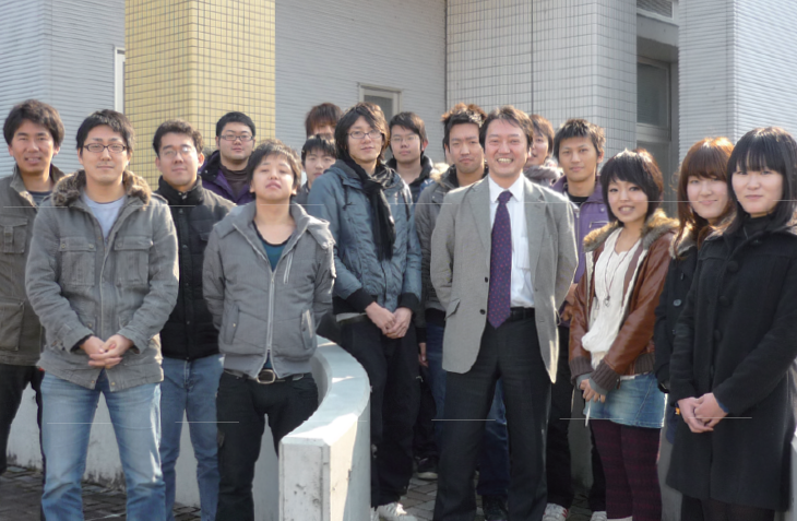 ▲ 研究室の学生の皆さん(神原先生を囲んで)