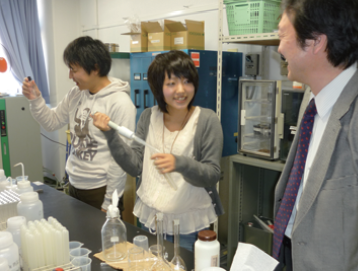工学部応用化学科をはじめ、大学院工学研究科環境エネルギーシステム専攻の博士前期課程・後期課程あわせて30名ほどの学生が、教授陣の下で11テーマにも上る研究に取り組んでいる。