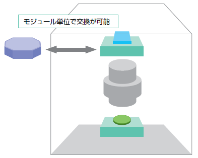 すなわち、プラットフォームはそのまま(設備の新規更新は行わない)でモジュールを交換もしくは追加することで、装置の高性能化、新規機能の追加を可能としている。