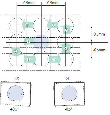 - ④アライメント画像処理には、レシピにより登録された10個のリトライ座標を順番にサーチするインテリジェントサーチ機能を採用した。