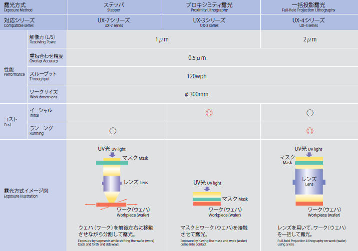 (2)一括投影露光装置(UX-2およびUX-4シリーズ)