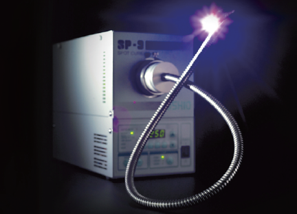 「スポットキュア」は、点光源の超高圧UVランプを使用しており、ファイバー等によって光を取り出す装置である(図2参照)。ワークの条件に応じて、ファイバーの分岐数、照射径、長さなどが調整できる。