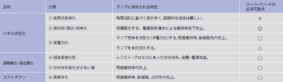 TVの多面取りによる大型化の流れはかなり緩やかになってきたが、デジタルサイネージなど、パネル全体をひとつの大きな液晶として使用する用途はまだ延びている。この場合、パネル全体がひとつの製品となるため、より高い均一性、安定性がランプにもめられると考えている。