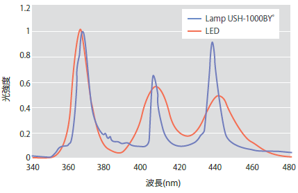 図6. UVランプと露光用LEDのスペクトル