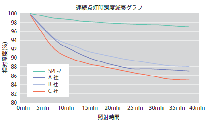 図3. 従来機種とSPL-2における照射開始時からの照度減衰率