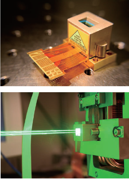 一方、ソニーが開発した赤色LDの外観写真を図15に示す。波長645nm、4.4Wの光出力の赤色レーザーを達成し、2005年の愛知万博で発表したレーザープロジェクターに搭載した。また短波長化への取り組みも行っており、635nm、7Wの赤色レーザーも開発している4)。近 年では、2010年に開発を発表した大型プロジェクター用の高効率RGBレーザー光源モジュール5)にも赤色レーザーが使用されており、642nm、10W(5W×2個)、22%で使用されている。