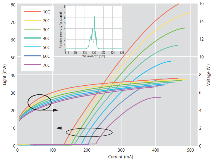 図8. 三菱電機 緑色レーザーの特性