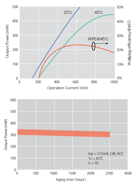 図14. 電流-光出力特性と寿命曲線