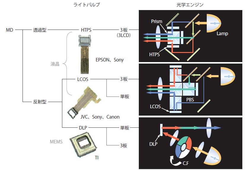 現在主流であるプロジェクター用のマイクロディスプレイを大別すると、