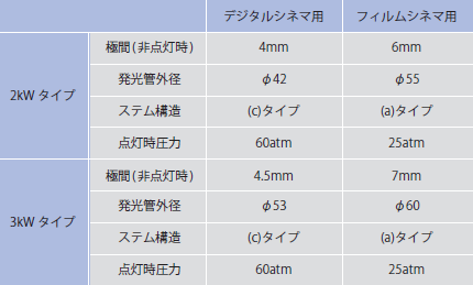 表1. デジタルシネマ用とフィルムシネマ用のランプの違い