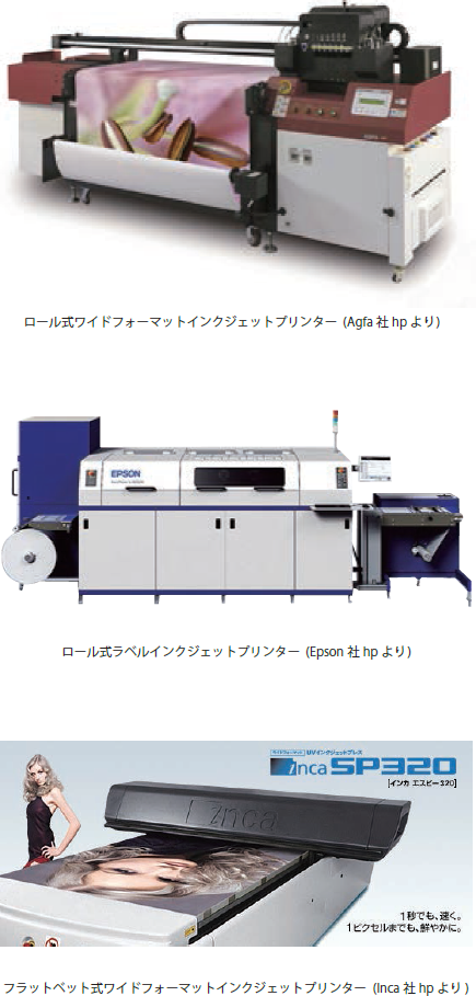 大判印刷向けであるワイドフォーマット用インクジェットプリンターを例にとると、世界全体の販売数は、2010年で約13万台。うち、UVインクジェットプリンターは約4千台と予測されている。