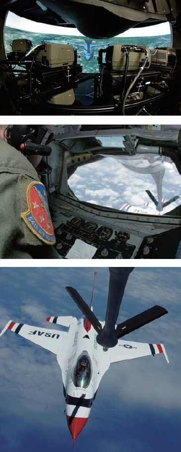 写真1. US Air Force, Air Education and Training Command(AETC) に設置された「空中給油のシミュレーション」向けトレーニングシミュレーション用プロジェクターChristie Matrix Seriesが10台インストールされ、そこにChristie AutoCal™が使われている。非常に精密で正確な映像再現が求められるシミュレーション装置のため、このChristie AutoCal™機能が活用されている。