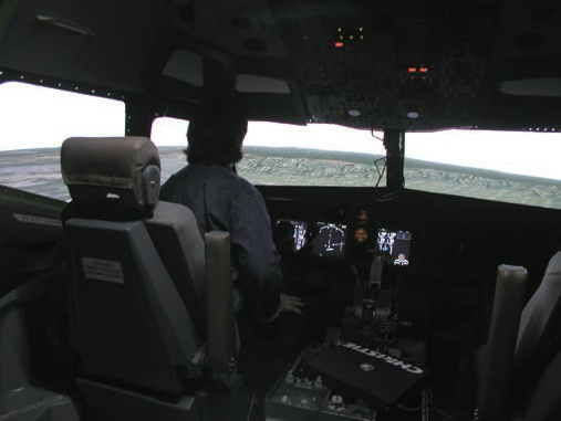 図2. 航空機シミュレーションでコリメートディスプレイの上部に取り付けられたプロジェクター