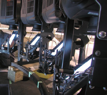 図1. 複数のプロジェクターに取り付けられたMotoBlendTMが電子ブレンディングと併せて使用される。