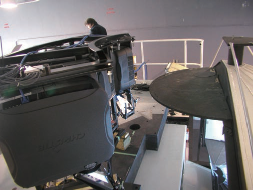 図2. 航空機シミュレーションでコリメートディスプレイの上部に取り付けられたプロジェクター