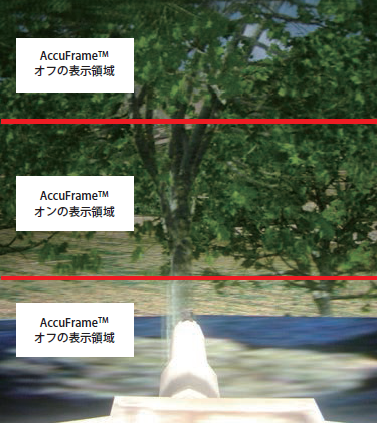 AccuFrameTMの保持時間は電子的に調整可能である。6 msecを大きく下回って減らすことができ、高速の動きに起因する画像のアーチファクトを排除または大きく低減する。オブジェクトはシャープかつクリアに表示され、観察者はオブジェクトをより簡単に追跡することができる。