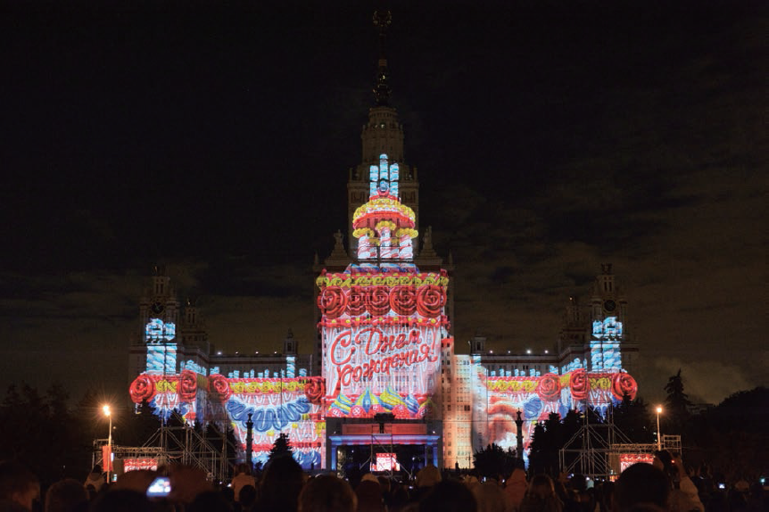 2011年7月にロシアのモスクワ市で行われた世界最大級のプロジェクションマッピングイベント。Christie Roadster S+20Kを66台、Christie Roadie HD+30Kを15台の合計81台のデジタルプロジェクターを使用し、モスクワ州立大学の建物約25,500㎡に投影された。映像だけでなく、俳優が映像の映っている建物をよじ登る演出もあり、約80,000人の観衆が映像スペクタクルを楽しんだ。