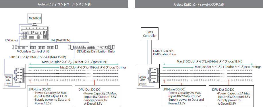 また、制御システムには、映像をそのまま送出できるビデオコントロールシステムと、個々の任意設定を可能にするDMXコントロールシステムを揃え、その双方に対応している。(図1参照)