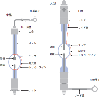 図6.キセノンランプの構造(ウシオ電機HP「光技術用語解説」より)
