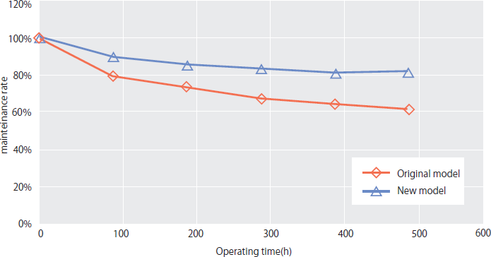 図5.従来型モデルと新型モデルの光量維持率比較