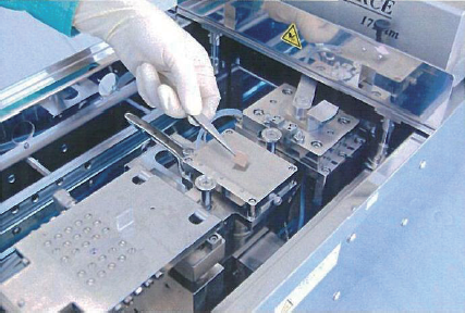 写真2.接着ステージへのチップセットの様子