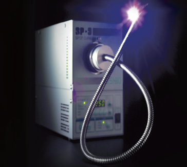 「スポットキュア」は、点光源である超高圧UVランプを使用しており、ファイバー等によって光を取り出す製品である(図2参照)。ワークの条件に応じて、ファイバーの分岐数・照射径・長さなどを調整する。