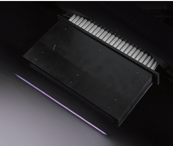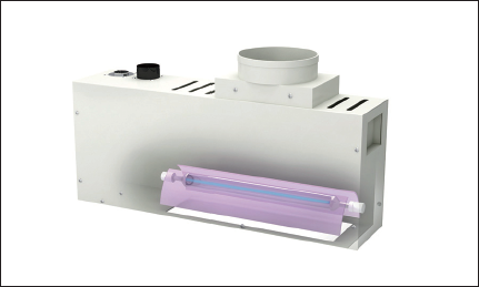 「ユニキュア」は、線光源を使用したUV硬化システムである。ランプを内蔵した灯具(図3)・冷却用ブロア・電源で構成されており、これらをセットで販売している。「スポットキュア」と比較して、大きい面積に照射することができる。ランプはメタルハライドランプと高圧UVランプの二種類があるが、上述したスマートフォン用では、主にメタルハライドランプが使用されている。