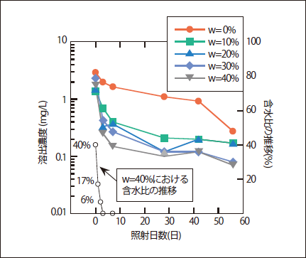 図5. 飛灰の初期含水比の影響3)(紫外線照射)
