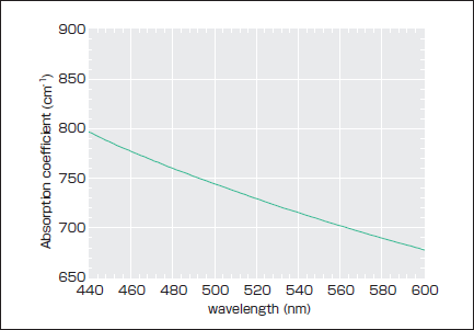 Fig.2 shows the absorption coefficient of PDMS, with a thickness of 0.1cm and 1 wt% carbon mixed inside. When wavelength reaches 532nm, the absorption coefficient is 720.736 cm-1. By applying the Lambert-Beer law, we can calculate carbon concentration in PDMS based on known thickness, transmittance and absorpti on coefficient. According to measurements, the scattering light on the surface of 3cm-thick black PDMS (carbon concentration: 1%~20%) is about 0.6% of that on the surface of white paper (100% scattering light). This indicates that black PDMS has much higher Extinction Ratio for light at 532nm, which means most stray light is eliminated.