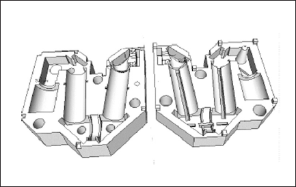 According to schematic diagram shown in Fig1, we design a three-dimensional PDMS optical path mold (shown in Fig.3) by Sketchup. To eliminate the stray light coming from the outside of the system, we also design a black PDMS casing which was made by mixing carbon inside the PDMS. The 3-D design diagram of its mold is shown in Fig.4. Both molds are printed out by a 3-D printer at the end.