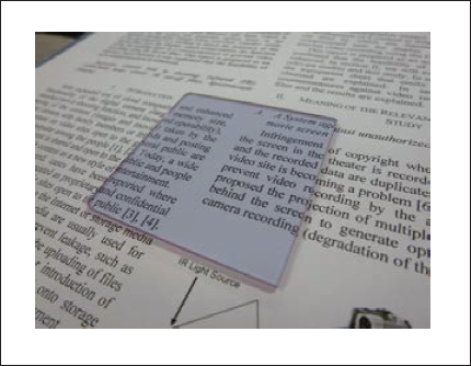 著者らは、要件4を満たしつつ、上述した特徴情報を抽出するために、人工物の表面に励起光を照射しながらその様子をカメラで撮影する方法(つまり、光励起によってガラス蛍光体が近赤外線を発光している様子を撮影する方法)を提案する。これは、励起光の照射により、前述した「粒子の位置」と「粒子同士の結合の度合い」が「赤外線の発光位置」と「発光量」に対応するためである。なお、抽出された上記の情報を図1 に示す参照データに登録しておくことで、製品の真正性の判定が可能になる。