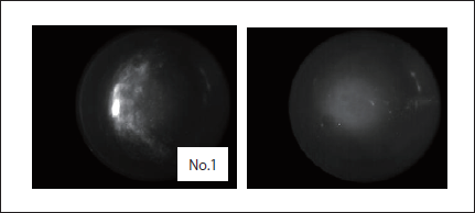 - (1)視認の困難性:ガラス蛍光体が持つ色を考慮して、人工物には少量のガラス蛍光体を添加するが、これによる薄い青の着色を視認しにくいこと(つまり、ガラス蛍光体が添加されていることを目視で確認しにくいこと)を確認する。