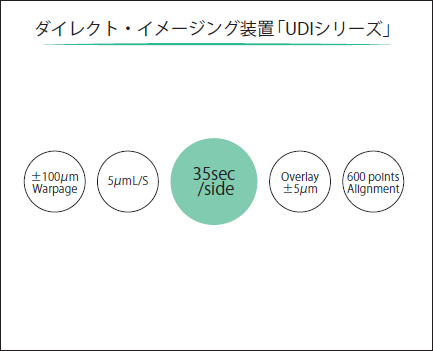 今回JPCA2013において、弊社は露光装置の新ラインナップとして、プリント基板向けDI・ダイレクトイメージング装置「UDIシリーズ」を発表いたしました。解像性能5µmL/S、重ね合せ精度±5µm,処理能力片面35秒の3項目について、ご紹介させていただきます。