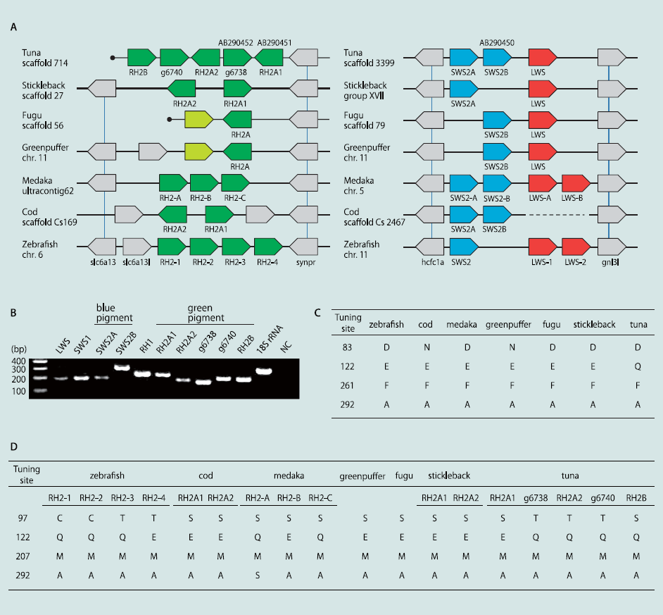 Evolutionary changes of multiple visual pigment genes in the complete genome of Pacific bluefin tuna. Proc Natl Acad Sci U S A. (PROCEEDINGS OF THE NATIONAL ACADEMY OF SCIENCES OF THE UNITED STATES OF AMERICA)