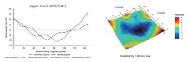 Fig. 11. Warpage of +28μm measured on die 1 shadow region after TCB 2
