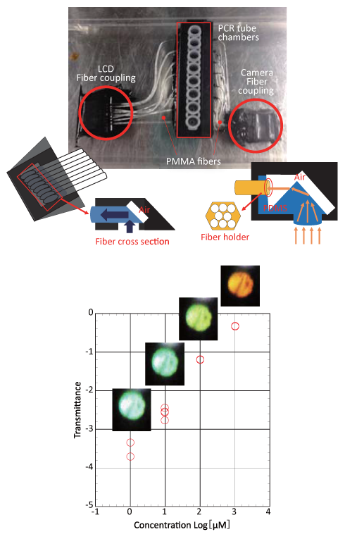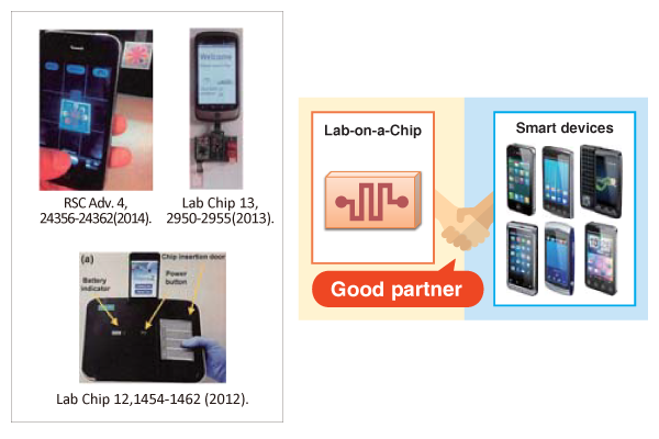 ● Lab on a chip is study for optical system with filled optical light guides. Recently, combination with smartphone are also studied.